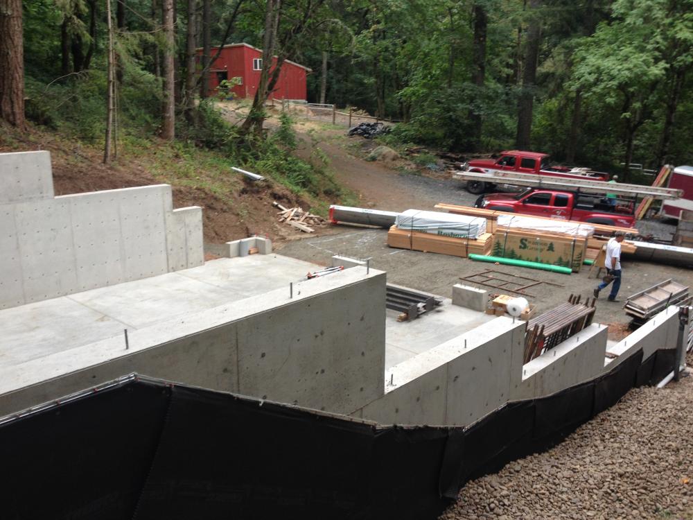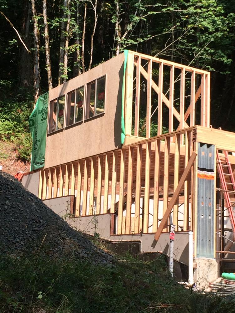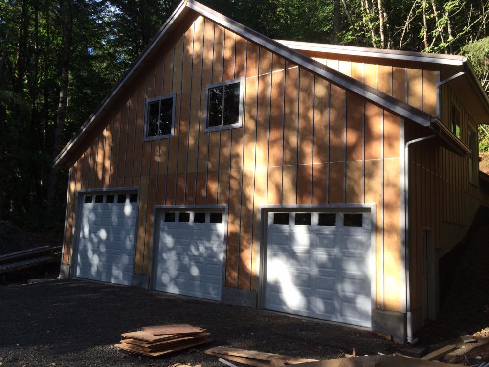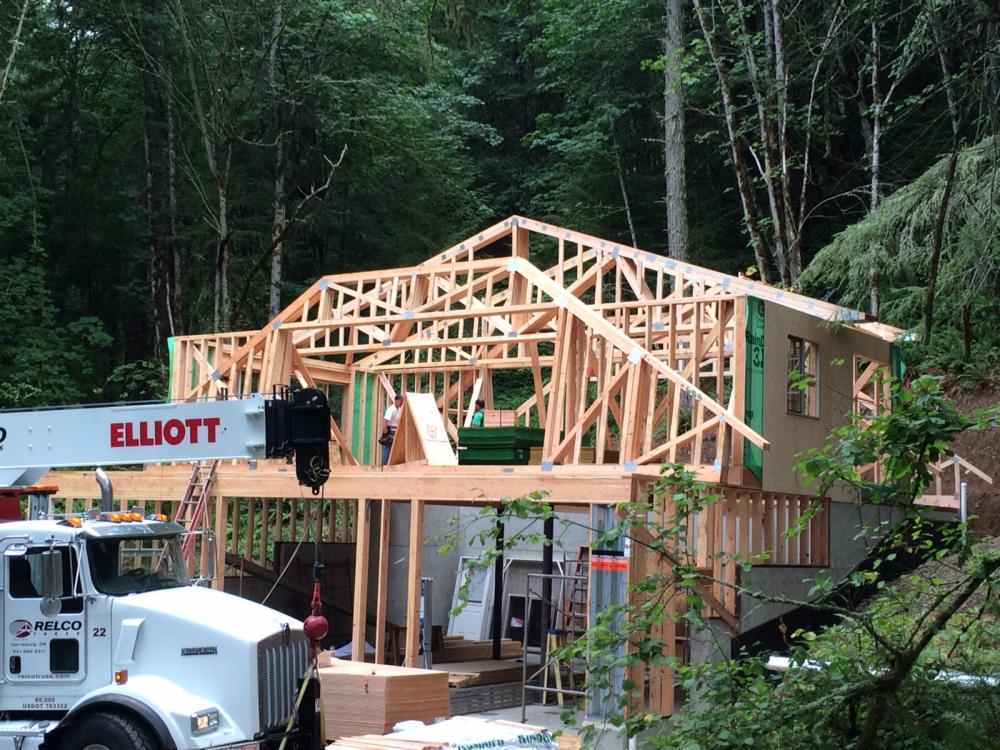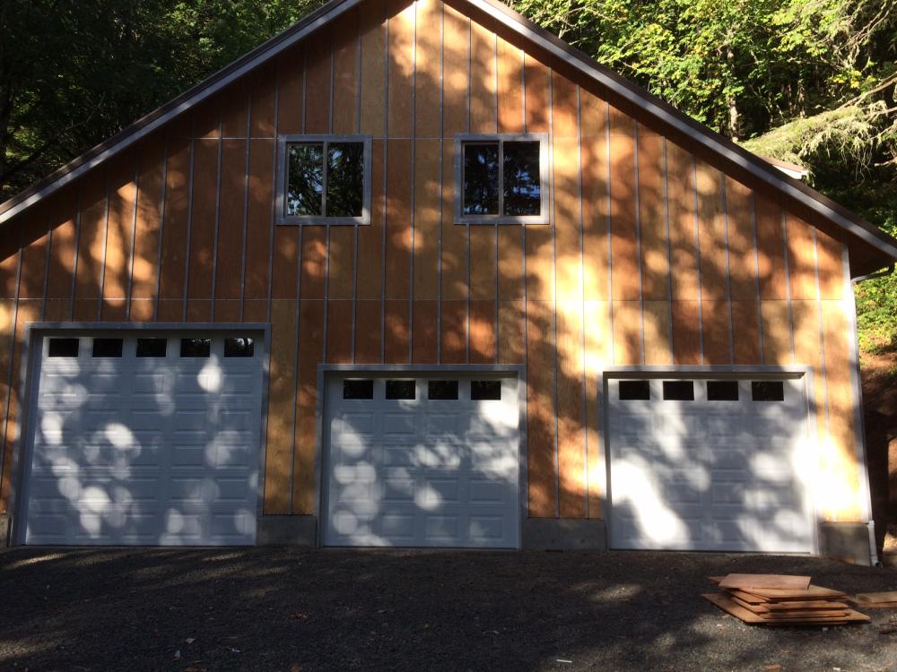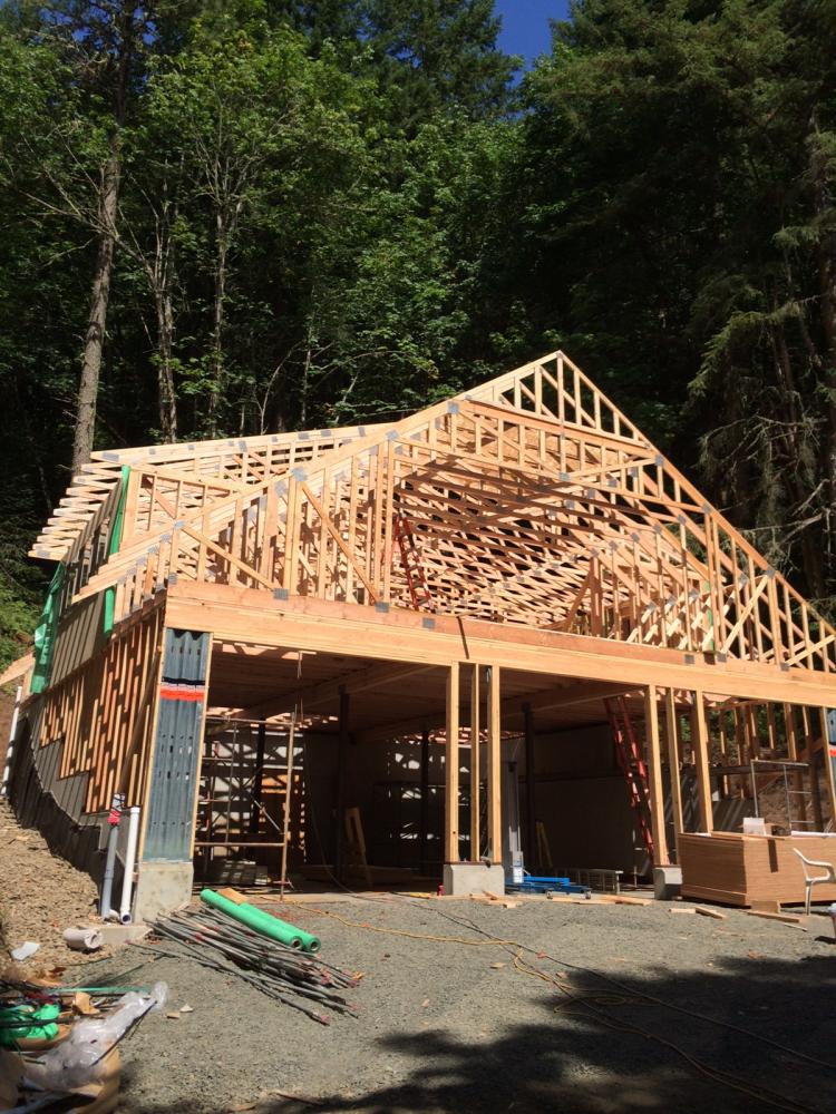 Foundation is in Foundation is in Exterior wall framing Roof truss delivery Rolling trusses for roof framing Rolling trusses for roof framing Sheeting Sheeting Window install Garage doors installed Framing and siding complete Framing and siding complete Framing and siding complete Framing and siding complete Framing and siding complete