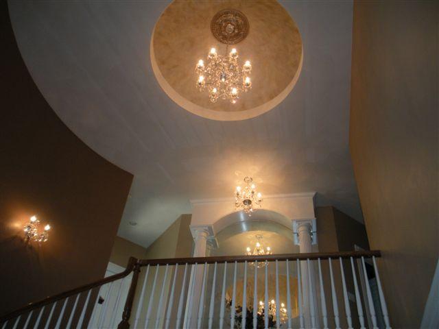 Radius wall and stairs, dome ceiling, rope lighting, custom mirror.