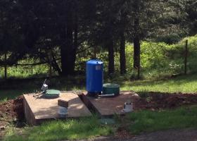 This system is designed to capture roof run off via the gutters. PVC pipe run below ground into (2) 1500 gallon tanks. Read more about The owners have received the grant reimbursement and are ecstatic with its operation.